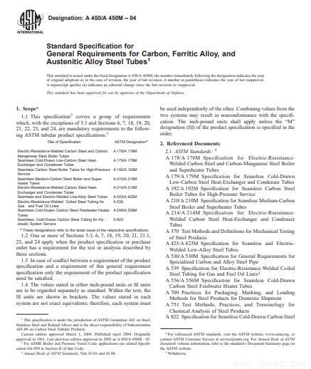 ASTM-A450-碳鋼鐵素體和奧氏體合金鋼管的一般要求標準【下載】