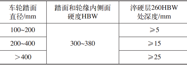 1)熱處理車輪表面狀態應符合不同直徑車輪的熱處理技術要求,見表2。