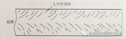 實際多晶體金屬斷裂時,主裂紋向前擴展,其前沿可能形成一些次生裂紋,這些裂紋向后擴展借低能量撕裂與主裂紋連接便形成人字紋。