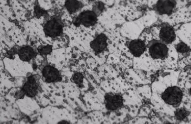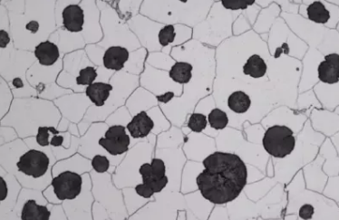 圖10 球墨鑄鐵中真實的組織,白色不規則多邊形的鐵素體和灰色球狀石墨。簡單清晰,眉清目秀,給人賞心悅目的感覺。