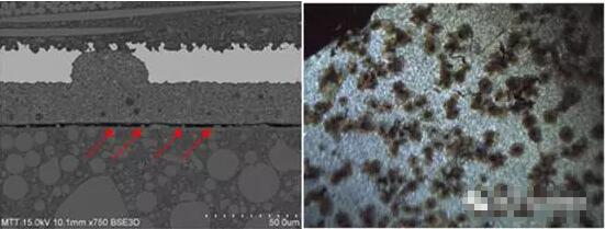圖9  左IC分層失效 、右涂層樣品界面點腐蝕失效