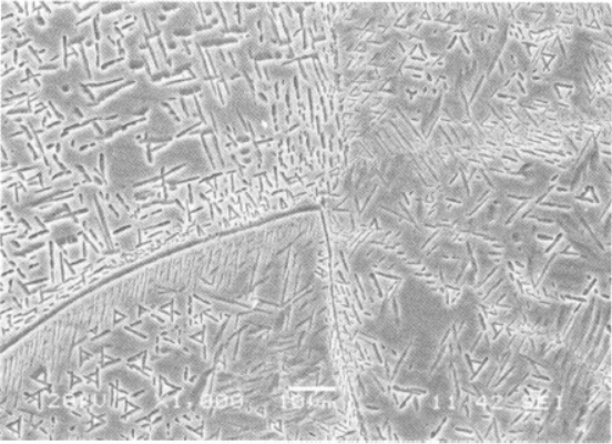 3-49 Ti1300合金β相區固溶+時效組織:針狀次生α(亮條)在β基體上析出