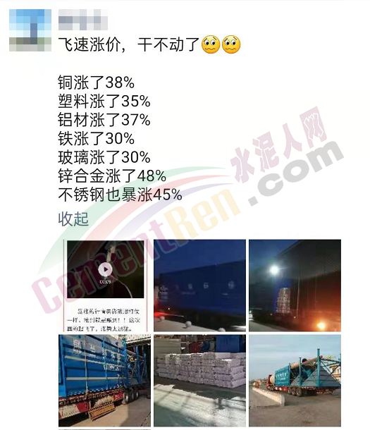 近日,“漲價函”滿天飛,只因為:銅漲了38%、塑料漲了35%、鋁材漲了37%、鐵漲了30%、玻璃漲了30%、鋅合金漲了48%、不銹鋼也暴漲45%。