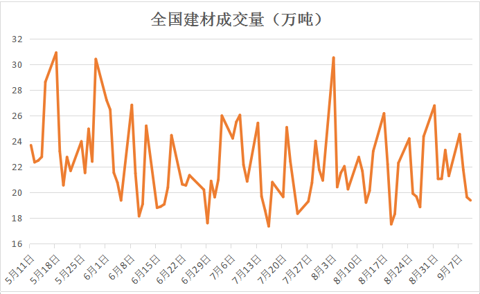 本周市場受期貨大跌影響,市場成交謹慎,終端觀望情緒較濃,建材成交略有回落,但仍保持19萬噸的水平,反映需求韌性較強。且華東地區建筑用料水泥價格持續上漲,目前已恢復至上半年旺季水平,意味著建筑需求逐步釋放。后市鋼價仍有支撐。