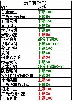 5月28日邢臺德龍部分下調90:重廢3-6:3037,重廢3類≧6:3110,重廢5類≧10:3137,重廢6類≧15:3165,重廢7類≧20:3192,鋼筋壓塊3238,汽車大梁3137,邊絲壓塊3137,二極管壓塊3137,矽鋼片壓塊3174,花鐵壓塊3302,精重3367-3476,鋼筋頭直徑≥6mm長度150mm以內3520,不含稅。